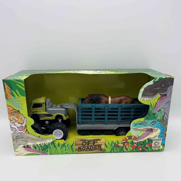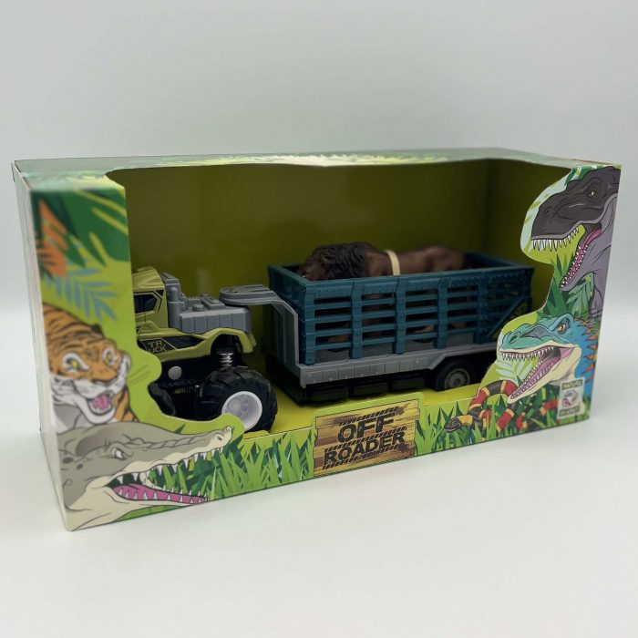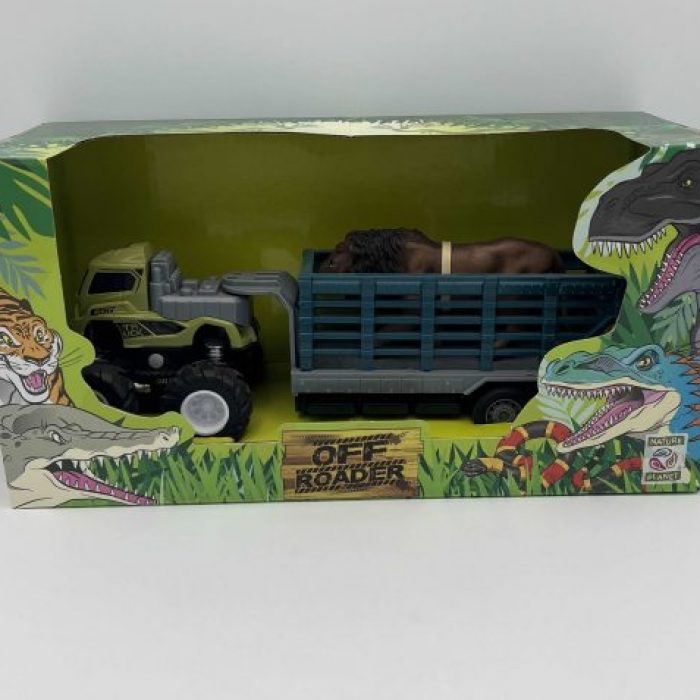 Prépare-toi à créer tes propres aventures avec ce camion à friction, sa remorque et le roi de la savane !